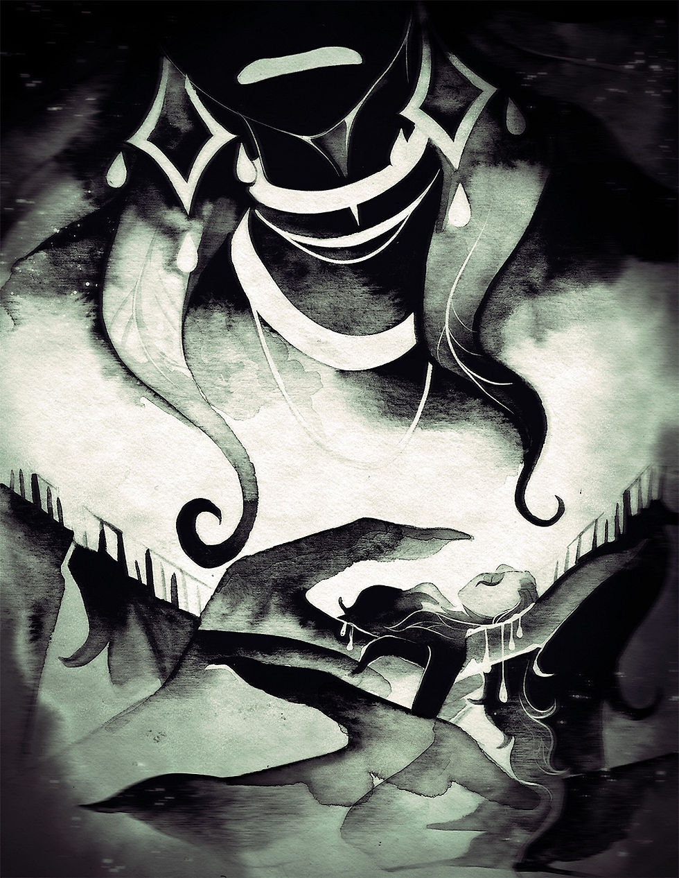 Ses crocs poussèrent, ses sclères devinrent noires, et bientôt il fut aussi grand qu’un homme. Et plus il grandissait, plus sa rage en faisant de même, son esprit se durcissant tandis qu’il devenait un ogre.
